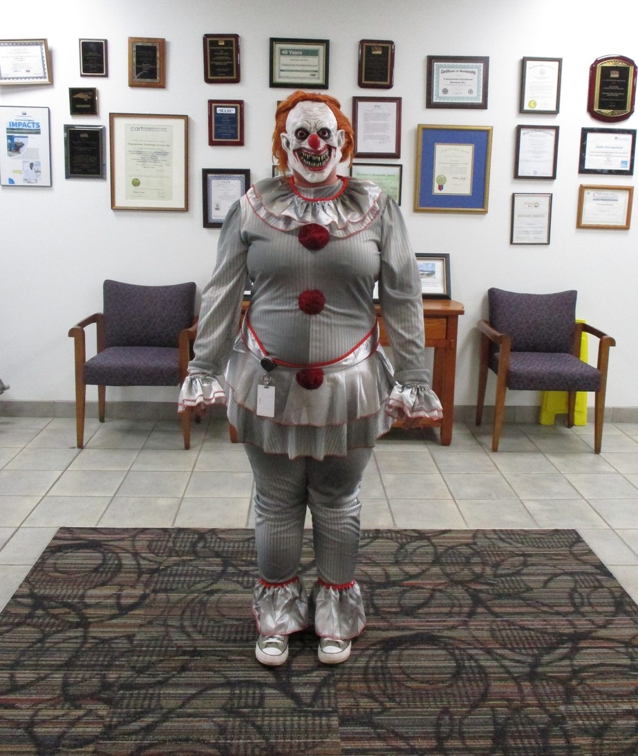 Congratulations to Sara Gibbs for winning the Halloween contest! Her scary clown costume spooked the most employee votes.