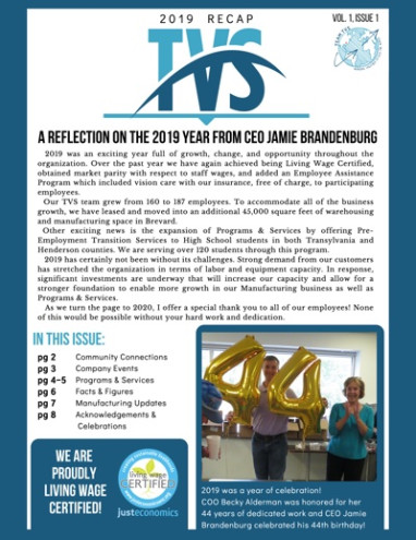 Expanding programs & growing business This 2019 recap newsletter highlights important moments such as; the new Pre-ETS program, ‘No Limits’ art shows, warehouse expansion, and sales growth with U.S. government contracts. Also included are manufacturing “fun facts” and summary statistics for Programs…