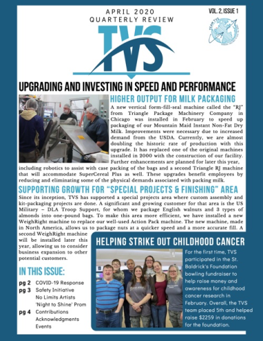 Upgrading machinery and working united during COVID-19 Even with the challenges of the COVID-19 pandemic, TVS remains strong in all aspects. This newsletter features equipment updates being implemented to benefit employees and keep up with growing demands, measures implemented to ensure participant…
