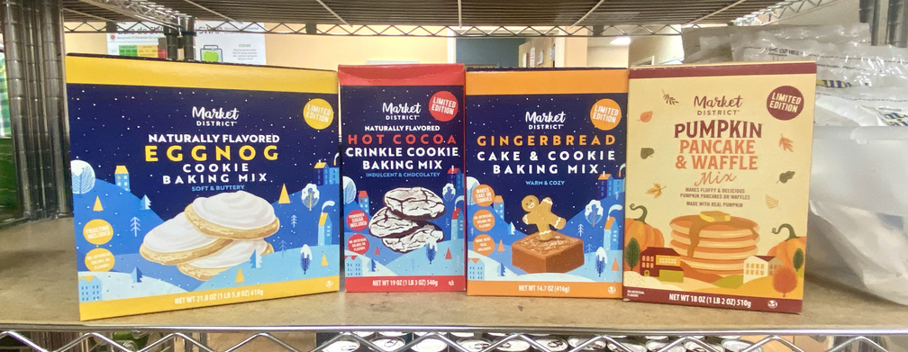 Over 200 cases of Market District brand Eggnog Cookie Baking Mix, Hot Cocoa Crinkle Cookie Baking Mix, Gingerbread Cake and Cookie Baking Mix, and Pumpkin Pancake and Waffle Baking Mix were split between the food pantries. These four products are manufactured at TVS’ sister facility, Dover Foods, in Mills River.